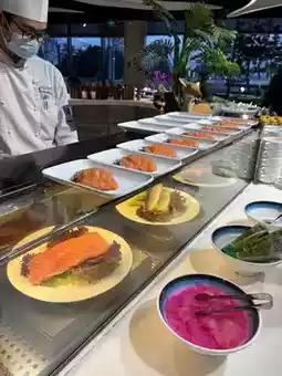 The executive lounge is still closed, so a buffet is provided as compensation; last year, a set meal was provided as compensation, but the set meal is definitely not as delicious as the buffet; the oysters in the buffet are still very delicious, and they are super big; in this way, the Marriott Platinum Card was upgraded to a sea view suite, plus two breakfasts and two buffets, for less than CNY 400, plus a welcome gift of 1,000 points and 1,000 points for the Q1 event, it is really worth it here!