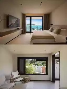 The guesthouse boasts excellent soundproofing, ensuring a peaceful night's sleep even when the waves are crashing. The rooms are spotless, with a fresh, clean scent. The thorough cleaning extends even to the pet-friendly rooms, which are completely free of any pet odors. The rooms are bright and airy, with balconies directly facing the ocean, providing stunning sea views every day.
