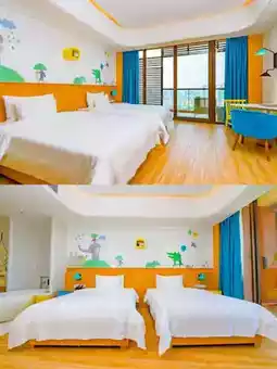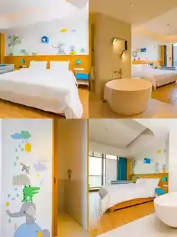 Each room is equipped with children's slippers and toothpaste, and even the bathtub has space for children to play. There are plenty of free fruits and desserts, so parents can lie down and be "hands-off shopkeepers"
