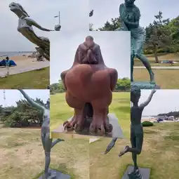 - Seaside Sculptures: Various large-scale sculptures are scattered along the coastline, creating breathtaking scenes against the backdrop of the vast sea. Capture memorable photos here, whether you prefer a fresh, artistic style or a grand, majestic one. For instance, the sleek, uniquely shaped modern sculpture against the blue sky and sea seems to tell a futuristic tale. The realistic human sculptures, with their detailed expressions and postures, evoke whispers of history.
