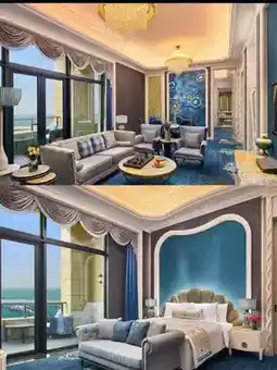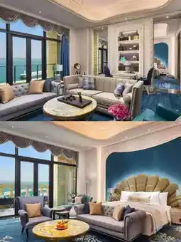 As soon as you step into the hotel lobby, you'll feel like you've entered an underwater world. Beneath the blue gradient glass dome, crystal chandeliers resemble flowing ocean waves, a sight that will leave you mesmerized. The fish tornado sculpture fountain in the lobby is an eye-catching spectacle, instantly putting you in vacation mode. The entire design blends classic European style with nautical culture, making you feel both romantic and adventurous.