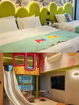 ✅Various themed family rooms available with new facilities that are cozy and high-quality. Impeccable cleanliness with in-room Xiaodu smart control system. Open the curtains for ocean views 🌊. The room is full of thoughtful details - constant temperature kettle, padded table corners, bathroom step stools, Xiaodu storytelling device, slides and rocking horses.
