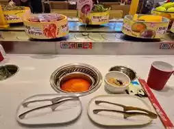 It's an all-you-can-eat hot pot restaurant where the hot pot ingredients are spinning like conveyor belt sushi. It costs 59.9 yuan per person, and in addition to the hot pot ingredients, you can also eat chicken, ice cream, bread, and fruit.
