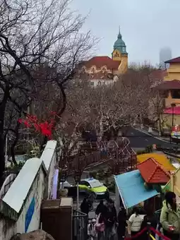 Qingdao Catholic Cathedral was one of the places I most anticipated during my Qingdao trip! The first thing that caught my eye upon arrival was its magnificent Gothic-style facade. The blue towers soared toward the sky, and the yellow brick building immediately caught my eye from afar. It had a European feel within China, and I was truly impressed from the moment I saw it.😃