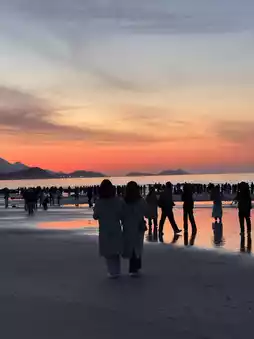 - Numerous modern sculptures along the coastline create stunning visuals against the sea and sky, perfect for artistic or grand-style photos. Examples include abstract line sculptures and realistic human figures, with some featuring explanatory plaques for context.