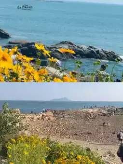 2. Next, visit the **Seaside Flower Field**. From mid-May to June, golden coreopsis blooms blanket the area, complemented by layers of pink roses. A half-body shot here will flood your social media with likes.