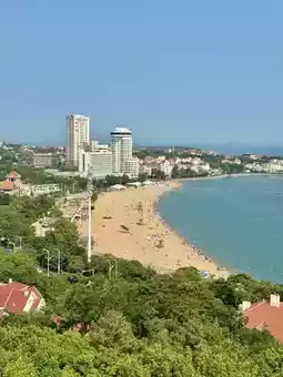 This is the perfect spot to overlook Qingdao's old town and the sea! From here, the red-tiled roofs, green trees, and azure sea unfold like a stunning painting🎨