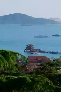 Opening the door, I was greeted by a sea breeze🌊. The room was compact but meticulously designed. Setting down my luggage, I approached the window to see Zhanqiao Pier stretching into the sea like a white jade ribbon, white sails dotting the blue satin water⛵. The window framed this living oil painting, its hues shifting with the clouds🎨.