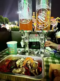 Visitors can immerse themselves in the festival's excitement, enjoying a variety of local and international brews served in unique glassware. The lively ambiance is complemented by food stalls offering delicious seafood and local delicacies, perfect for pairing with refreshing beers. The festival grounds are adorned with large beer-themed decorations, including massive beer cans on buildings and impressive sculptures, creating a festive atmosphere.