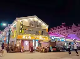 Qingdao's Pichiyuan Street is a tourist attraction with a vintage atmosphere. Most of the restaurants here specialize in fresh seafood, including shrimp, squid, starfish, and clams, which can be cooked. They also offer local snacks like stinky tofu and giant sausages, as well as Instagram-worthy desserts like ice cream, egg waffles, and corn dogs. The fresh seafood is a highlight here.
