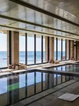 The glass pool extending into the sea, when the weather is good, blends water and sky. It’s recommended to shoot silhouettes against the backlight from 4 to 6 pm. If you can’t swim, come earlier because shadows from the building can spoil the view.