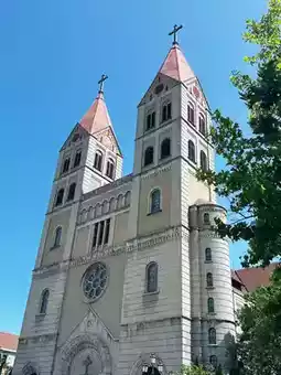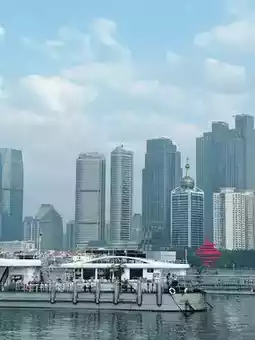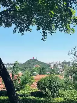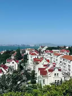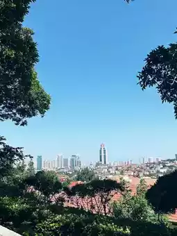 Next, we headed to the Little Fish Mountain Observatory. The stairs were steeper than I expected, but the climb was worth it. The city's skyscrapers, the sea, and the red-roofed European buildings unfolded like a painting. The breeze cooled us down, and we spent a long time taking pictures with our friends.