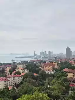 The mountain isn't very high, and I was a little disappointed with the Badaguan Scenic Area, but the view from the observatory—the sea, the German-style buildings, and the sunset—was breathtaking.