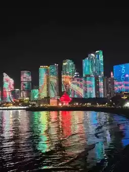 The evening light show at Qingdao's landmark, May Fourth Square, is truly breathtaking.