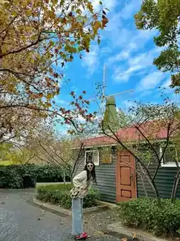 📷Photo Highlights: The maple leaves here turn bright red in autumn, contrasting beautifully with the surrounding European-style buildings. Walking along the path, casual snapshots capture the rich autumn atmosphere.