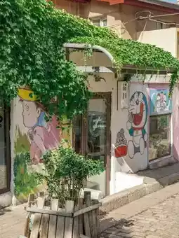 This charming little street in Qingdao 🇨🇳 is brimming with cuteness. Along the way, you'll find brightly painted walls with chibi cartoon designs that look like they came straight out of a manga world! 😍