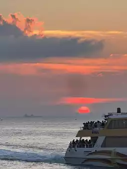 2. Orange Sea Silhouette: Choose the 17:30 departure, shoot against the light on the stern deck. Light-colored long dresses flutter in the wind, and the sunset dyes the sea orange like soda pop.