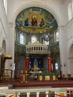 The interior offers a tranquil atmosphere, perfect for those seeking a break from the hustle and bustle of the city, capturing beautiful photos, or visiting a religious site.
