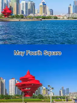 #เที่ยวจีน May Fourth Square ชิงเต่าเป็นแลนด์มาร์กริมทะเลที่เหมาะกับการเช็คอิน ถ่ายภาพ และโพสต์ลง Trip.com ด้วยแฮชแท็กแนว #SeasideVibes #QingdaoViews #五四广场 #TripMoments