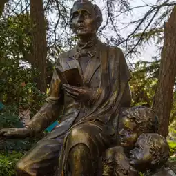 But what caught my eye this time weren’t the walls — it was the bronze sculptures quietly standing in its whimsical garden filled with sculptures of beloved characters