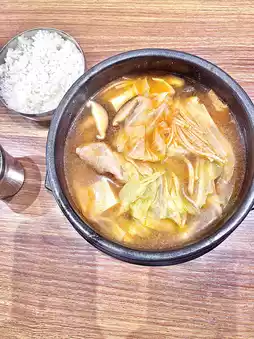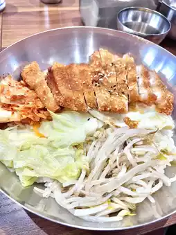 We ordered vegetable bibimbap, pork rib rice, barbecue rice, pork kimchi pot and Korean fried dumplings. What is amazing is that although the taste is unpretentious, it makes people eat with relish Also gave enough, after eating probably There are also to nine points full, the price is also very affordable, for example, I ordered a vegetable bibimbap only 90 yuan, and vegetable bibimbap is also included barbecue, no wonder even the weekday lunch time is packed, recommended to Everyone who likes to eat Korean food!