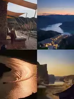Long gorges and flat lakes, reflections dancing, the once rushing Yellow River water meanders slowly around the mountains, revealing a surprisingly peaceful side. Standing on the cliff edge looking down, the blue sky and white clouds shimmer in the clear waves. When the sunset falls to the canyon's edge, the clouds seem to ignite, changing colors layer by layer. From orange-red to crimson purple, finally sinking into indigo. The afterglow of the sunset bathes the ochre rock walls, instantly gilding an entire face with gold foil.