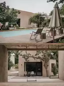The courtyard is wrapped in green vines, the giant leaves of monstera shine with oiliness, figs hang full on the branches. Pick any corner at random, and you can enjoy an incredibly relaxed afternoon.