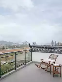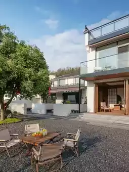 It's nestled in a small courtyard next to the 99m Dizang Holy Statue scenic area, bathed in Buddhist light. Surrounded by green mountains⛰, emerald bamboo, and new Huizhou-style architecture, the courtyard is shaded by ancient trees🌳, creating a beautiful, back-to-nature atmosphere.