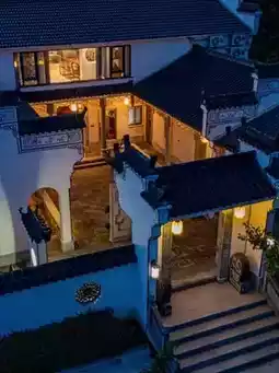From afar, you can see the Huizhou-style gatehouse with bluestone doorposts and upturned eaves, instantly transporting you to an ancient noble family residence.