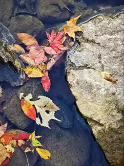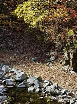 You can only hear the rustling of fallen leaves and the tinkling of the stream