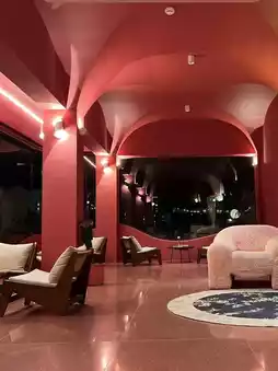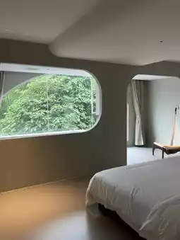 | Hot spring hotels worth visiting in Qingyuan. The cafe area is totally girly pink! Sitting by the window really feels like chilling in the South of France. The front desk is also the bar, and this area is bright and airy overall. The waiting area is also very photogenic.