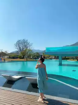 We booked the Swim-up Room, and it was absolutely amazing! 😎 Step right out of your room and into the pool for a refreshing swim. There are also small boats and rafts available for added fun. The huge infinity pool is perfect for taking stunning photos! 📸 The room was clean and well-maintained, with a private hot spring tub and a balcony, making it incredibly comfortable. 👨👩👧