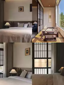 ❸ Zen Tatami | Pens, ink, paper, and inkstones are all available for practicing calligraphy and playing chess. Open the door to enter the secret realm of bamboo forest morning mist