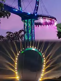 The world's longest glass suspension gallery (500m), with transparent views underfoot and a light show at night