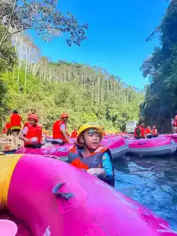 The river is shaded by green trees on both sides, so you don't need to worry about the sun at all~ The drop design is just right for children, screaming in the rapids, and having water fights in the gentle areas👧👦 The baby held the handrails tightly throughout the whole process but shouted "super exciting"! Parents should remember to keep an eye on safety and help their babies prepare life jackets at any time~
