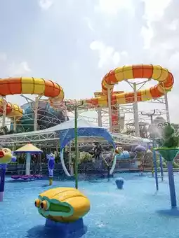 Featuring a 15m vertical slide, 1.5m wave pool,