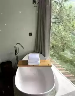 The guest rooms are a delightful surprise—spacious, immaculate, and fully equipped. Through the floor-to-ceiling windows, the breathtaking mountain views unfold before you. At dawn, as the first rays of sunlight touch your face, you can almost hear the birds singing outside and feel the crisp mountain air. Sinking into the plush bed, it’s as if you’re floating among the clouds, with all fatigue melting away.