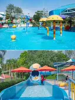 Located in the Meilin Lake Tourism Resort in Shijiao Town, Qingcheng District, Qingyuan City, and right next to the Meilin Lake Hot Spring Hotel, Meilin Lake Happy Water World is easily accessible. It's just a 70-minute drive from the main urban areas of Guangzhou and Foshen—a quick trip! With an investment of over 100 million yuan, this 50,000-square-meter water park boasts more than 10 sets of family-friendly amusement facilities, ensuring fun for the whole family!
