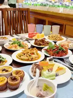 Evening lakeside buffet 🍽️ features a midsummer night theme with endless delicious options.