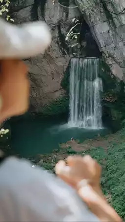 📸Waterfall: Yangpidong Waterfall is about 40 meters high and 30 meters wide. The water flows down from the cave on the cliff, like a galaxy hanging upside down, majestic. The pool below the waterfall is crystal clear, surrounded by greenery, like a fairyland. Here, you can take photos to record this unforgettable moment.📷