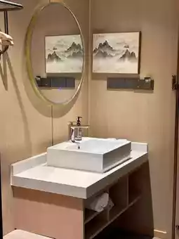 The hotel features Zen-inspired Chinese aesthetics rather than colorful cartoon themes.