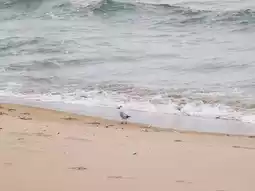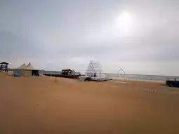 The wind is fierce, the sand is flying, and the waves are rolling.