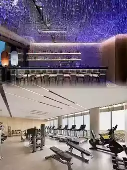 Stepping into the hotel lobby, a unique whale-shaped chandelier catches your eye, making you feel as if you've entered a fantastical ocean world. The lobby design cleverly incorporates marine elements, with blue-green as the main color scheme complemented by flowing lines, creating a peaceful yet vibrant atmosphere.