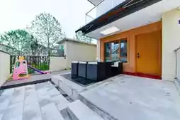 The highlight? The charming open-air courtyard. A winding stone path meanders through lush greenery, dotted with rattan chairs and tables, all under the glow of warm string lights. Spend the day lounging in the shade, lost in thought, and as evening falls, light a small lantern, share drinks and stories with friends, and gaze up at a sky full of stars. No city neon or noise—just nature's purest symphony.
