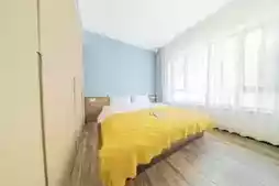 The room details hide clever touches. The muted Morandi color palette creates an ultra-gentle ambiance, while the plush bedding and matching throw pillows make it impossible to get out of bed. A cozy nook by the window, complete with a rattan side table and cushions, invites relaxation. Draw back the curtains during the day, and sunlight streams in—perfect for sipping tea, flipping through a book, and letting the sound of rustling leaves become your background music.
