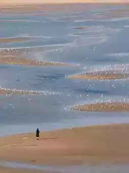 Pigeon Nest is one of Qinhuangdao's famous scenic spots. Here, you can gaze at the Bohai Sea's blue waves, white clouds, gulls, and sailing ships, or admire the clear shallows and gentle ripples. The laughter of shell collectors and the roar of waves blend with the park's iconic blue skies and crystal waters. The wooden boardwalk offers picture-perfect views at every turn.