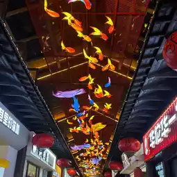 🌌This is a bustling night market in QinHuangDao that was recommended to us by a local. It has endless shops, beautiful streets and lots of delicious foods! Start at one and slowly make your way along the market, and admire the decorations along the way.
