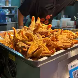 🍴The perfect place to end a day in QinHuangDao where you can grab some snacks/dinner and buy a souvenir. Maybe even try a roasted starfish if you’re willing!