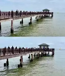 Now, the pier area is open to the public for free and is already packed with visitors. The adjacent private beach for property owners also seems crowded. For a quieter experience, you’ll need to head further south.