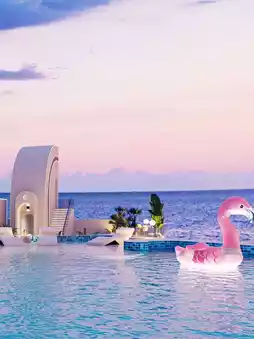 The public areas are also stunning: an impressive library, a three-story sea view restaurant, a five-story rooftop bar, and an infinity pool that blends seamlessly with the sea. Having a drink at sunset here is so comfortable you won’t want to leave~